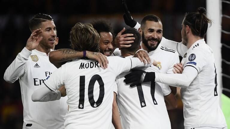 En la penúltima fecha de la fase de grupos, el Real Madrid celebró en su visita a la Roma con un triunfo por 2-1, con la que tiene prácticamente asegurado el primer lugar del grupo G.