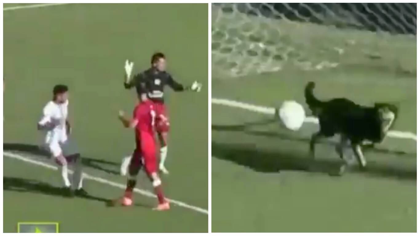 Y es que el can, accidentalmente, se metió a la cancha y pasó justo antes de que el balón pasara bajo los tres palos.