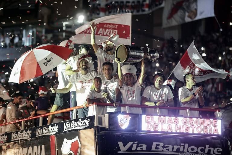Miles de hinchas de River Plate abarrotaron este domingo el estadio Monumental de Buenos Aires para celebrar la conquista de la Copa Libertadores.