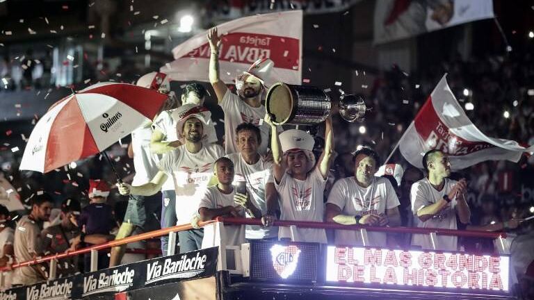 Después de haber vencido en la final a Boca Juniors el 9 de diciembre en Madrid, River al fin volvió a casa.
