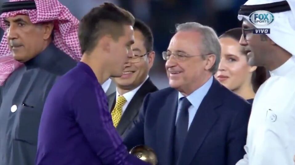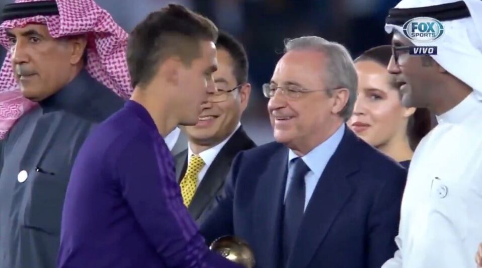 Durante la premiación, tras la final que le ganó el Real Madrid al Al Ain, el jugador subió a la tarima para recibir su premio.