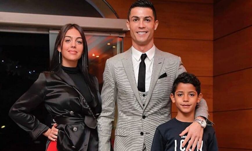 Y en el otro extremo de la foto aparecen Cristiano Ronaldo, también con un gorrito, y en sus piernas, Alana Martina.