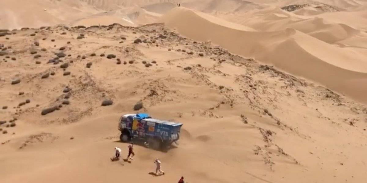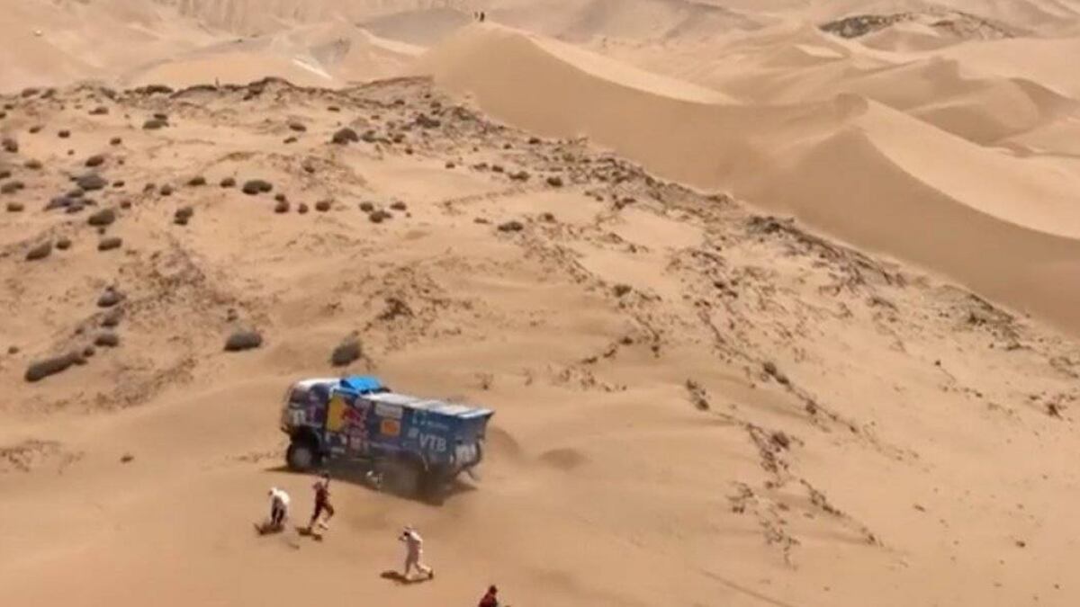 Un video se ha viralizado en la redes donde se ve cómo el pesado vehículo, en el que también viajaban Andrey Mokeev e Igor Leonov, se acerca a cinco aficionados a toda velocidad por una duna y atropella al extranjero.