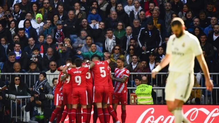 Tras recobrar momentáneamente el segundo puesto de la tabla, derrotando la semana pasada al Atlético de Madrid en el derbi, los blancos sucumbieron este domingo ante el Girona (1-2), con goles de Christian Stuani y Cristian Portu, y prácticamente entregaron sus opciones de alcanzar al Barcelona.