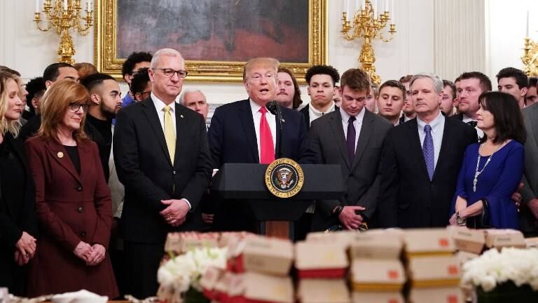 En enero, Trump había recibido a otro equipo universitario de football americano, los Clemson Tigers, con un festín de hamburguesas y pizzas.