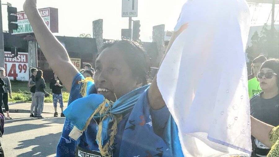 El recorrido se extendió desde el Dodger Stadium hasta la ciudad de Santa Monica. Varios connacionales radicados en dicho estado del país centroamericano se congregaron con la bandera de Guatemala y carteles con mensajes a favor de las mujeres indígenas y migrantes.