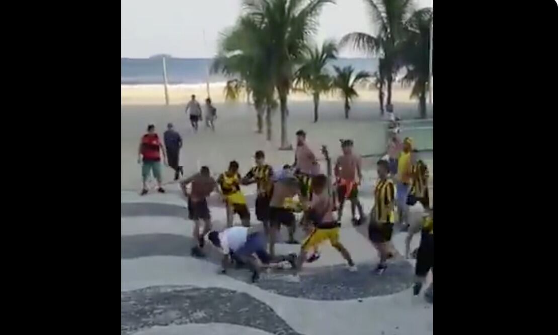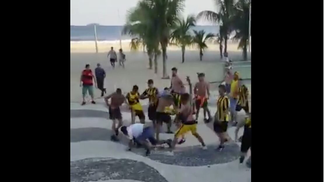 Imágenes publicadas en medios brasileños y en redes sociales muestran a grupos de hombres, muchos con la camiseta de Peñarol, golpeando a otras personas.