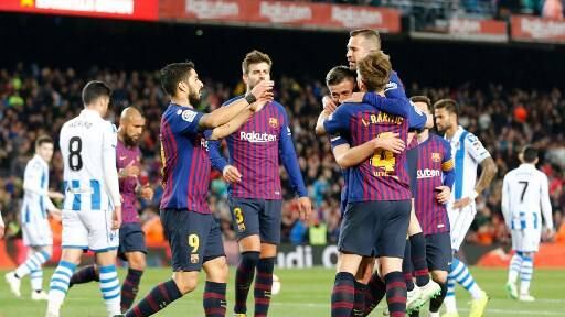 El Barcelona quedó a dos triunfos de consagrarse campeón de La Liga, tras imponerse este sábado 2-1 a la Real Sociedad en el Camp Nou.