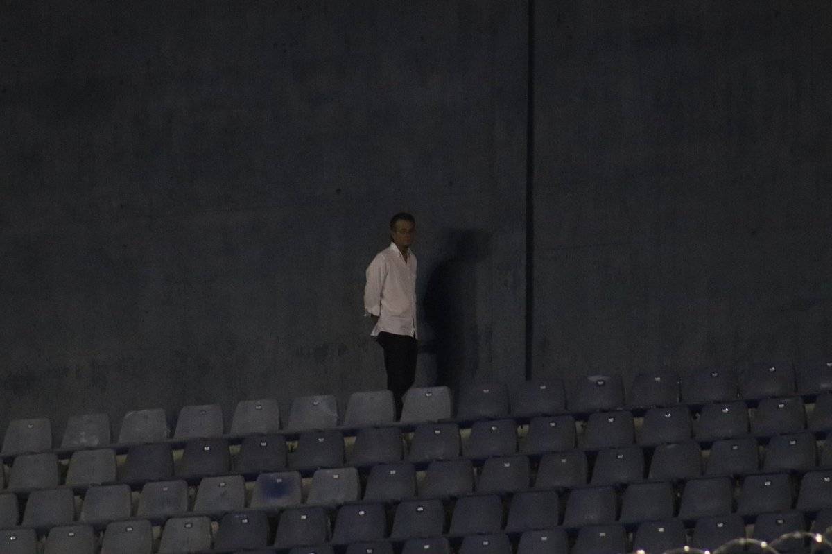 Las imágenes captadas por el periodista de Emisoras Unidas, Mynor Sandoval, dan cuenta de un Portilla en solitario dentro de una de las localidades de dicha instalación deportiva.