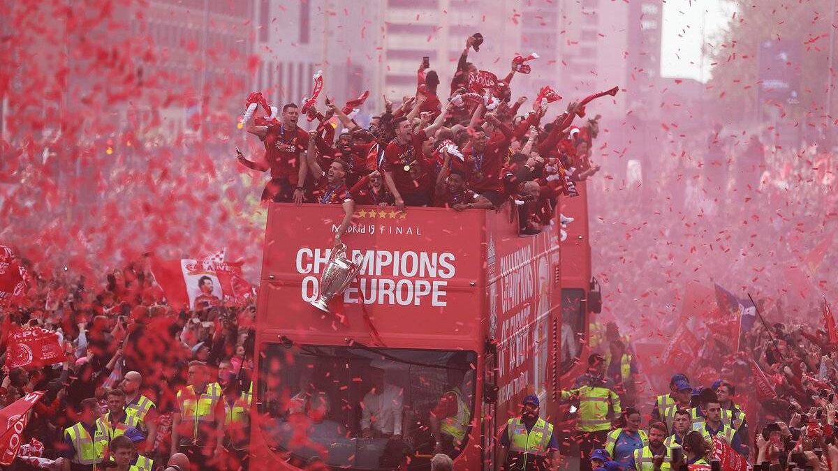 El entrenador Jürgen Klopp y los héroes del sexto título continental pasearon en un autobús descapotable, mostrando la 'Orejona' en un desfile.