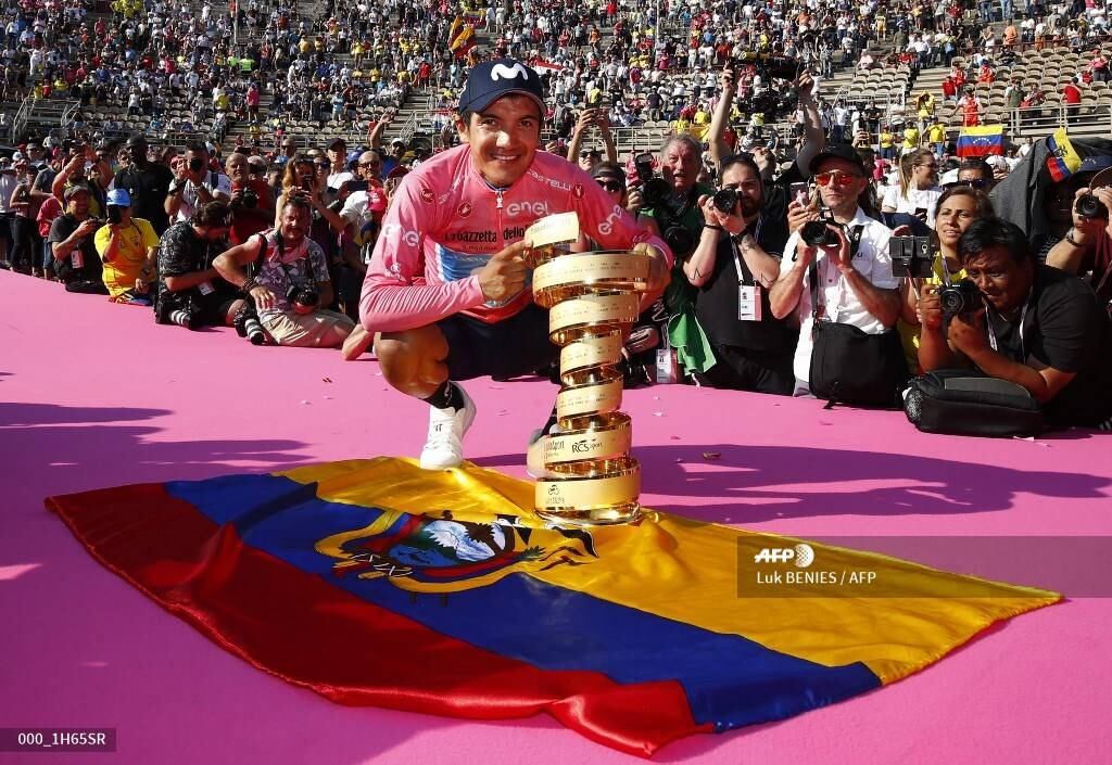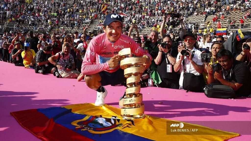 El ecuatoriano Richard Carapaz se unió este domingo en Verona a los grandes espadas que han ganado en los últimos años el Giro de Italia.