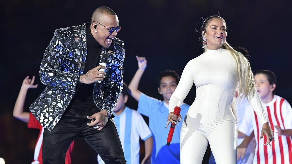 La artista colombiana Karol G y el brasileño Léo Santana interpretaron el tema "Vibra Continente", canción oficial de la Copa América 2019.