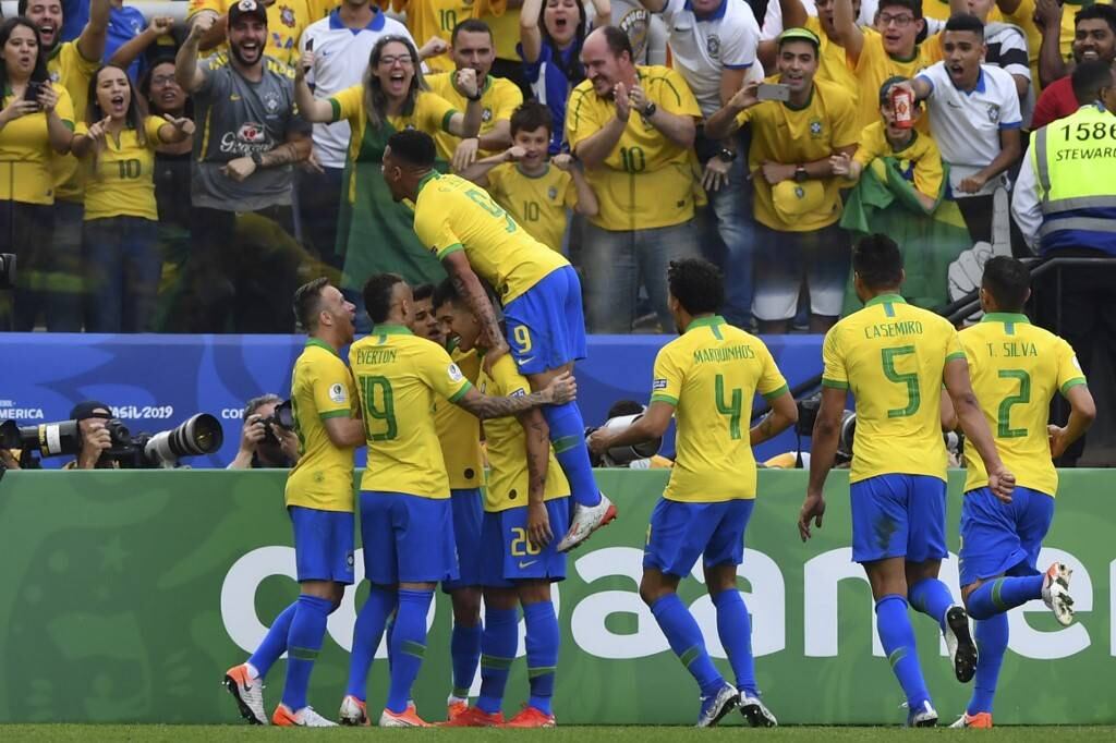 Brasil goleó a Perú 5-0 y clasificó a los cuartos de final de la Copa América siendo el líder del grupo A con siete unidades y de forma invicta.