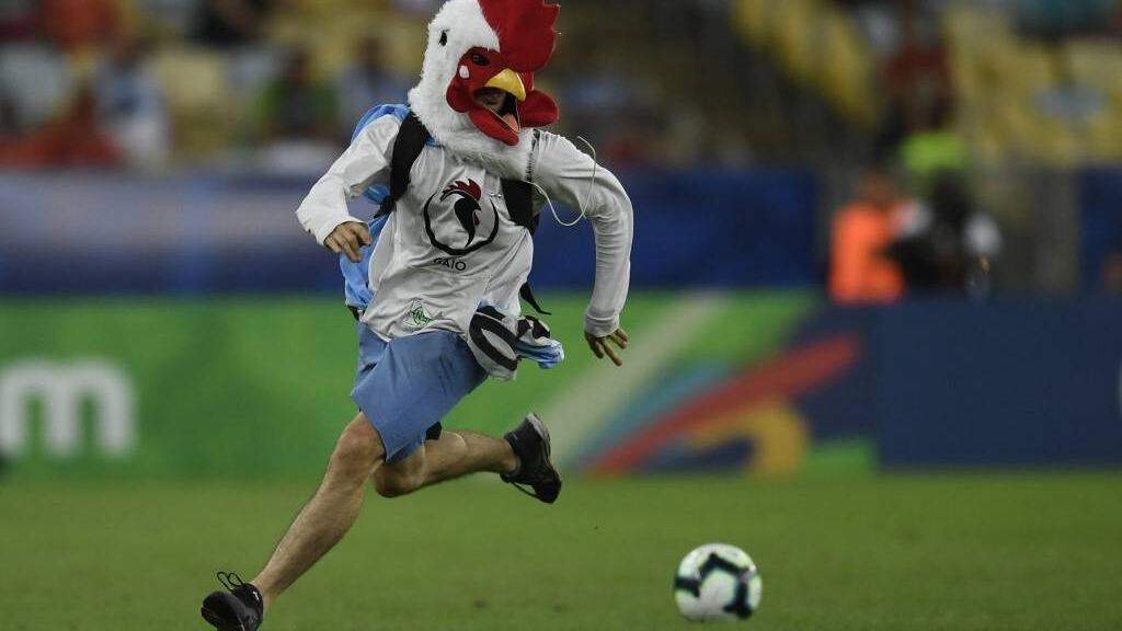 El “hombre pollo” que entró a la cancha para el juego entre Uruguay y Chile, y que recibió una patada de Jara, habló al ser liberado, conoce su historia.