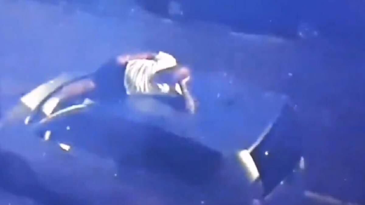 Posterior a descender del techo del auto fue detenido por las autoridades locales.