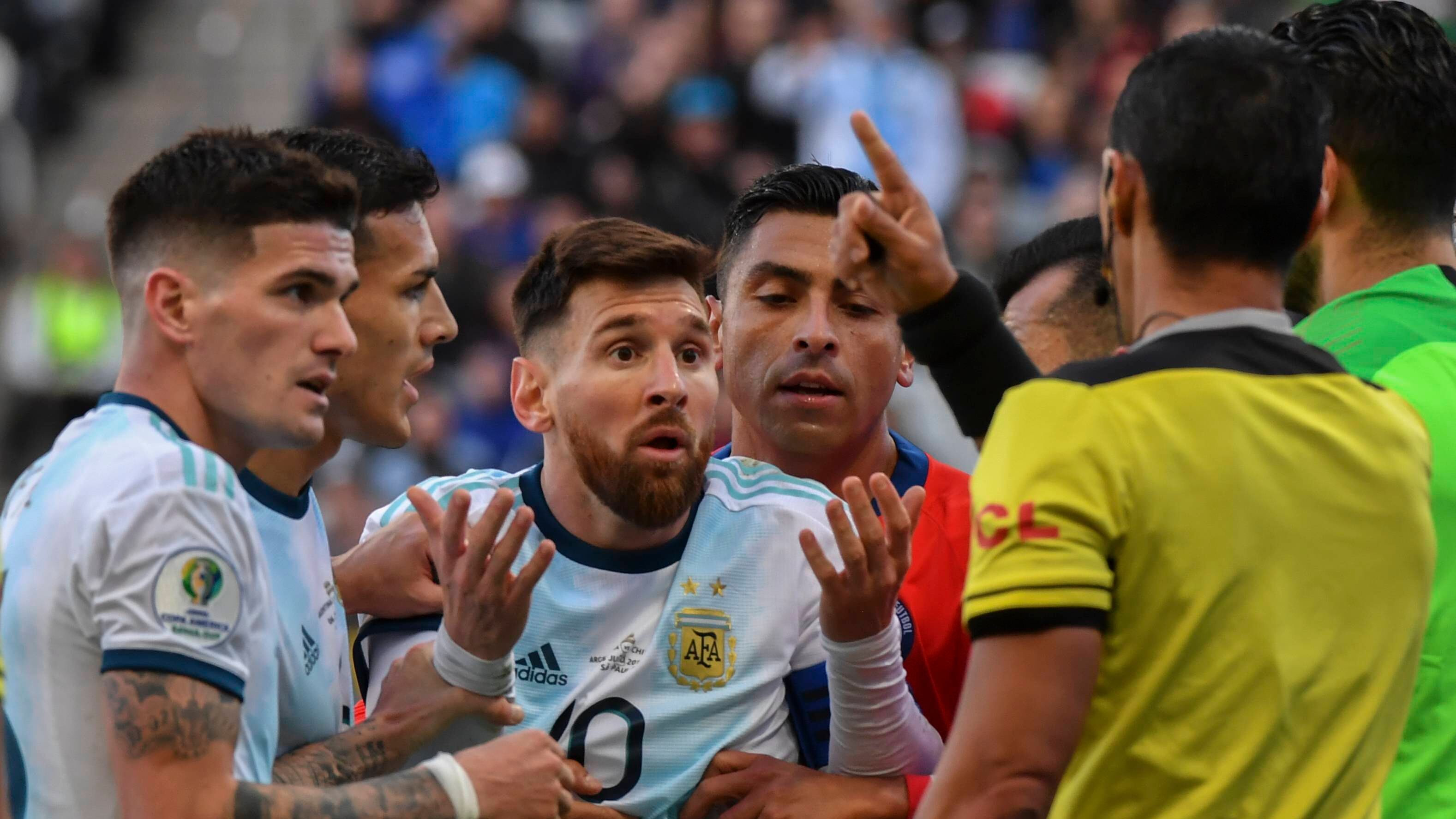 Esto ocurrió luego de que recibiera una tarjeta roja en el partido de Argentina contra Chile de la Copa América.