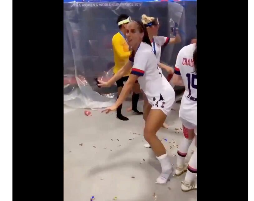 La bella futbolista estadounidense, Alex Morgan, encendió las redes sociales con dos sexys bailes en el vestuario, tras ganar el Mundial Femenino.