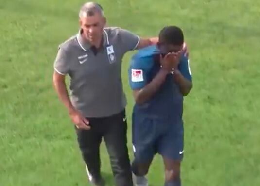 Inmediatamente el joven futbolista se tira al piso a llorar, posteriormente se retiraría del terreno de juego.