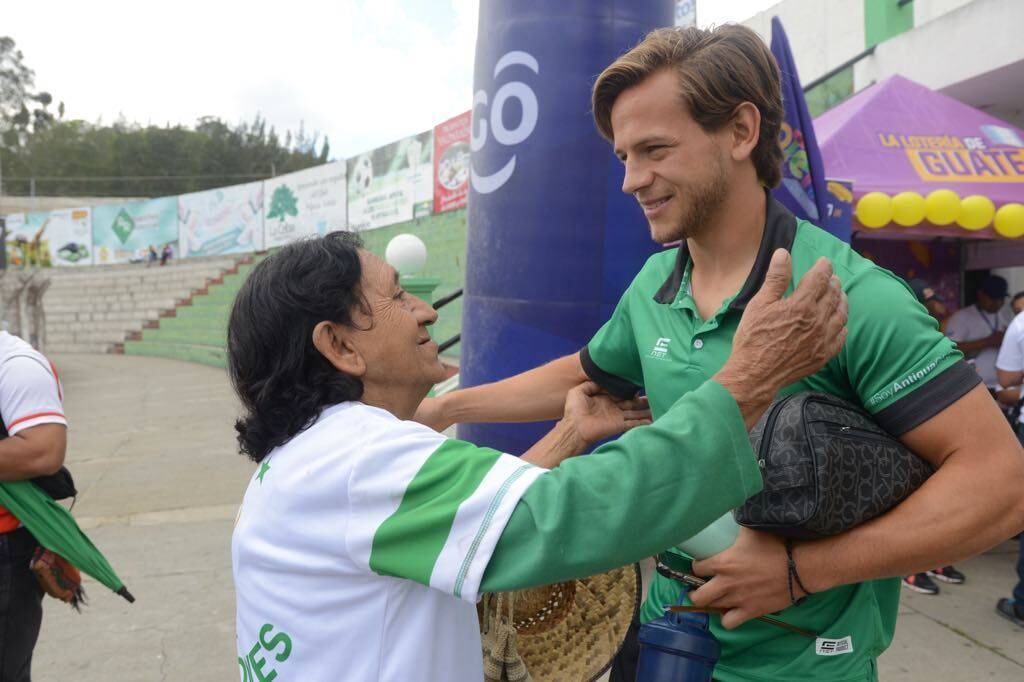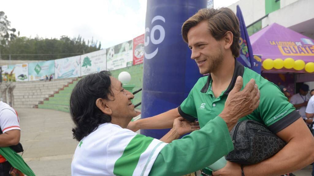 La bella y tierna mujer, aficionada del equipo Antigua GFC, le dio la bendición a cada uno de los futbolistas coloniales cuando éstos ingresaban a los camerinos.