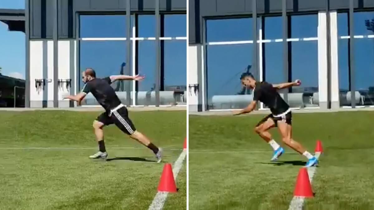 Ambos se encontraban ensayando sus sprint, pero el argentino se vio muy mal ante la estrella de la Juve.