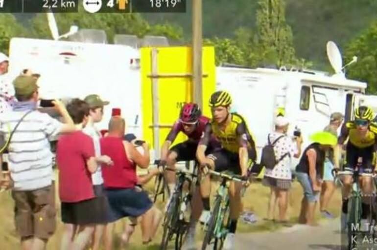 Según se explicó, la expulsión de los dos ciclistas se debe por haber sido considerados culpables de un altercado en el final de la decimoséptima etapa de este día.