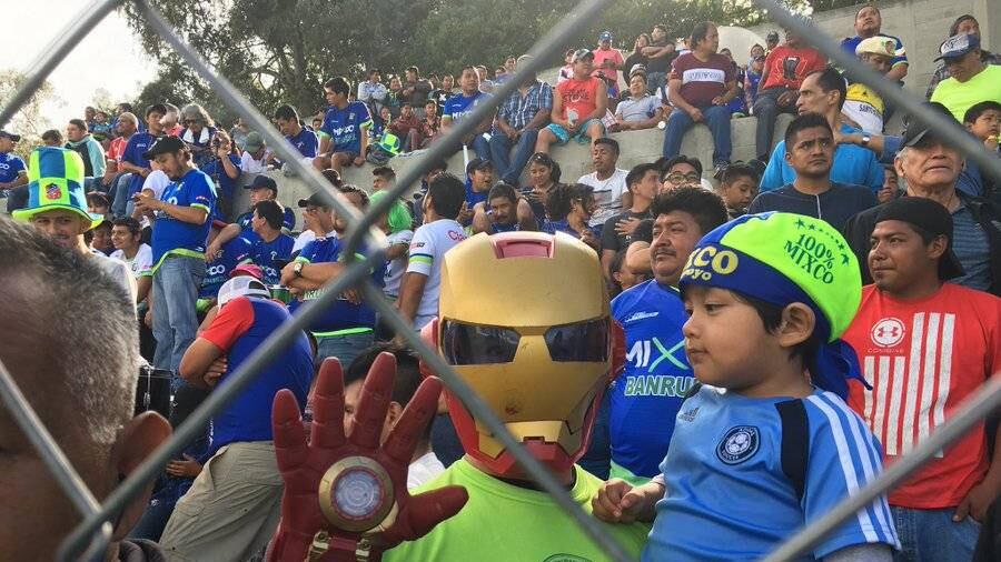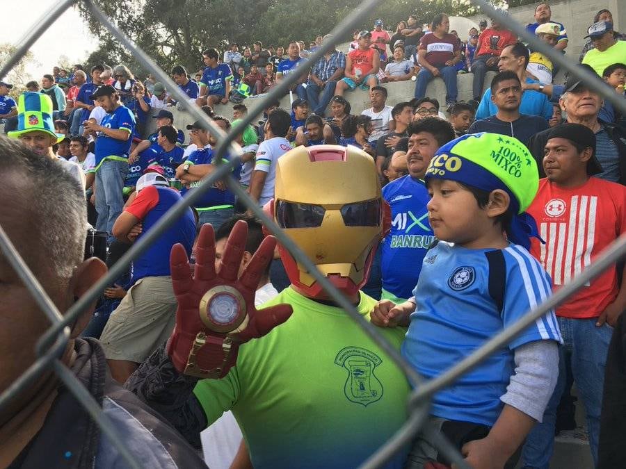 Dentro de los aficionados, Publinews localizó a un hombre que utilizó un disfraz de Iron Man para amenizar el partido.
