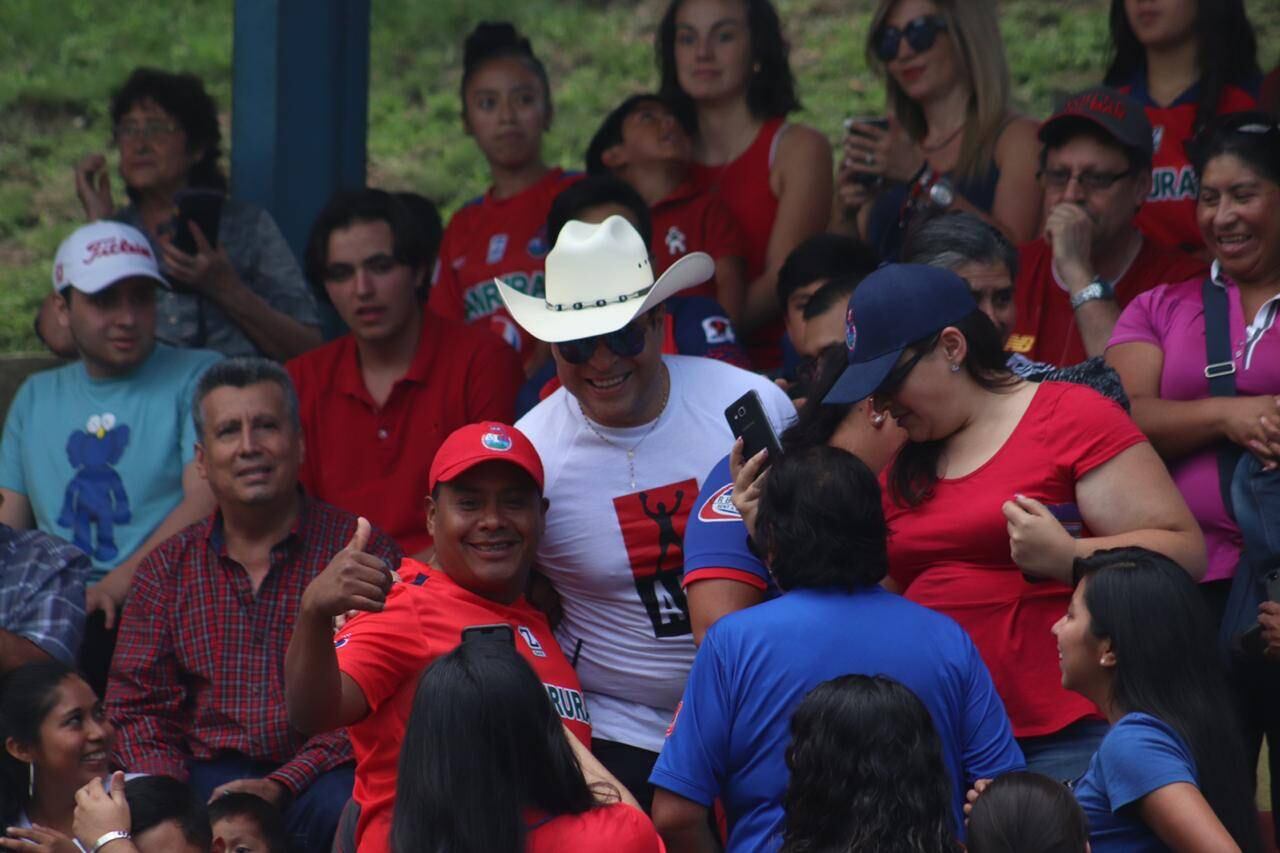 Los aficionados que se hicieron presentes en buen número al estadio, le pidieron fotos y autógrafos al político, quien llegó con un sombrero, anteojos obscuros y una playera color blanco.