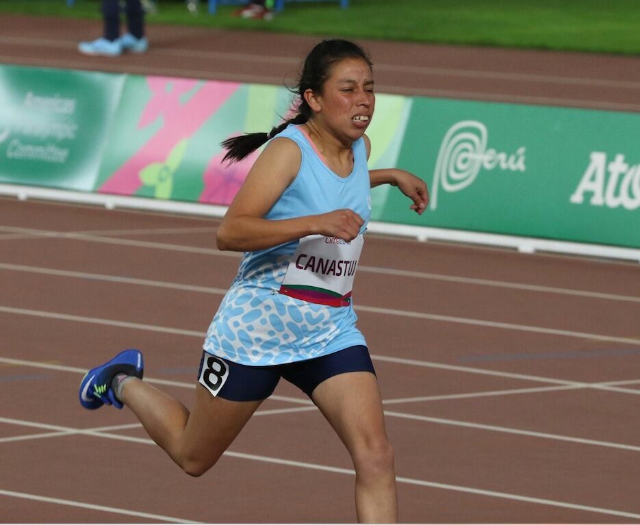 Martha Canastuj fue la segunda en salir a competir en las pruebas de para atletismo.