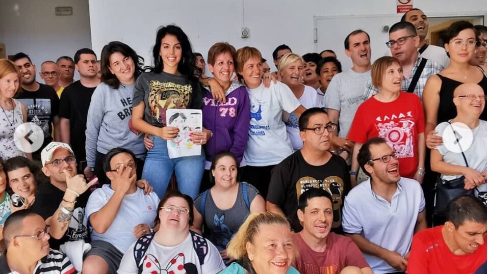 La bella Georgina Rodríguez tuvo un tierno encuentro en el que además, recibió un dibujo de su familia, de manos de personas con síndrome de Down.