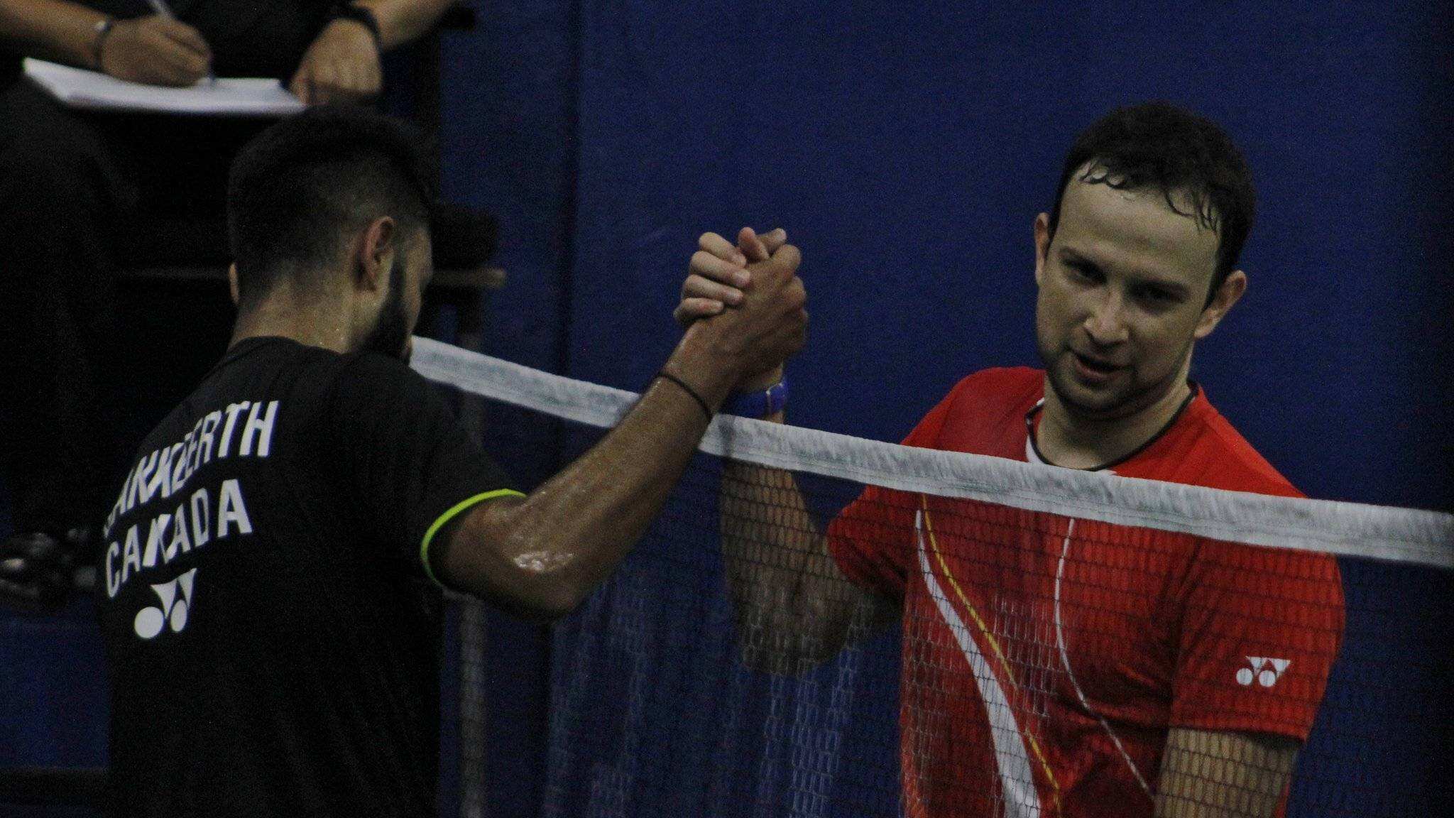 Posteriormente derrotó al otro canadiense, Kevin Barkman, 2-0: 21-15 y 21-3.