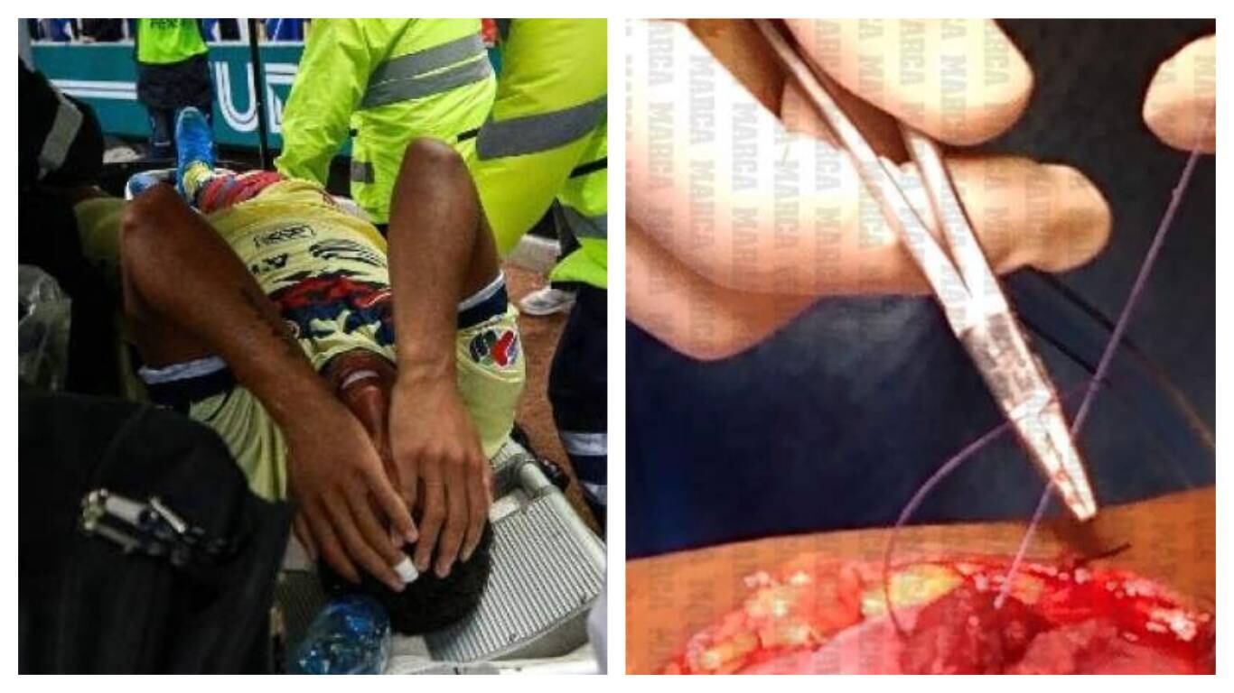 El jugador sufre de una abertura en el cuádriceps y la herida tiene unos 20 centímetros, pareciera que es una cornada de toro que una lesión de futbol.