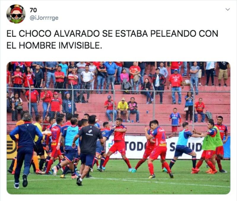 Un polémico penalti a favor de los rojos desencadenó empujones, patadas y golpes entre los futbolistas. En cuestión de segundos, el estadio El Trébol se convirtió en un campo de batalla entre los jugadores.
