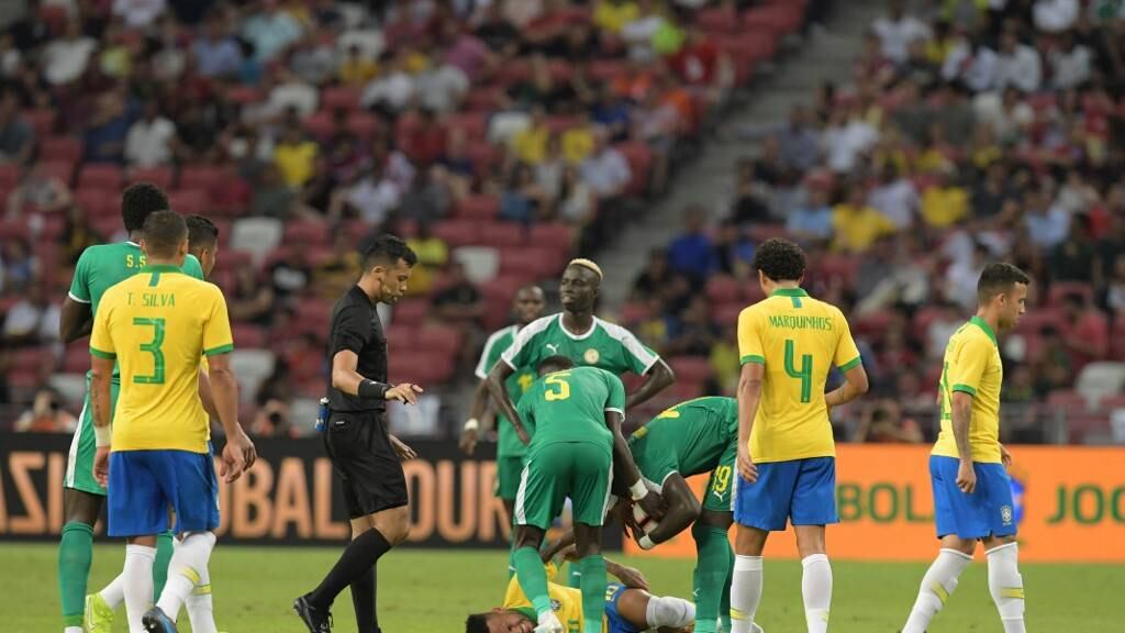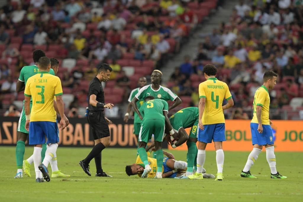 En el banquillo, el equipo médico de la 'Seleçao' le puso una bolsa de hielos en la parte trasera del muslo del atacante, quien disputaba su partido 101 con Brasil.