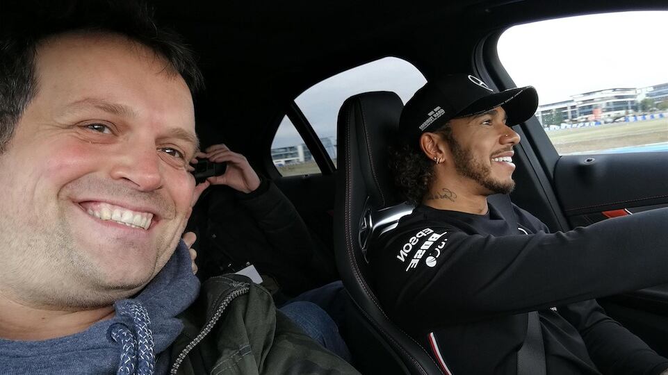 - Como no tenía un auto de F1 de dos plazas a mano, Hamilton nos llevó en un Mercedes AMG 43 durante tres vueltas.