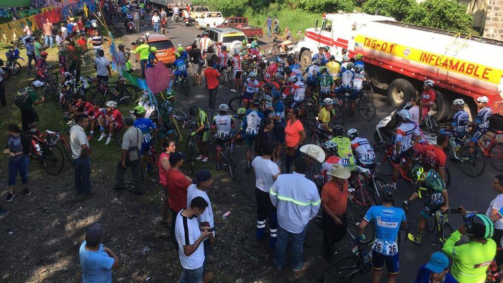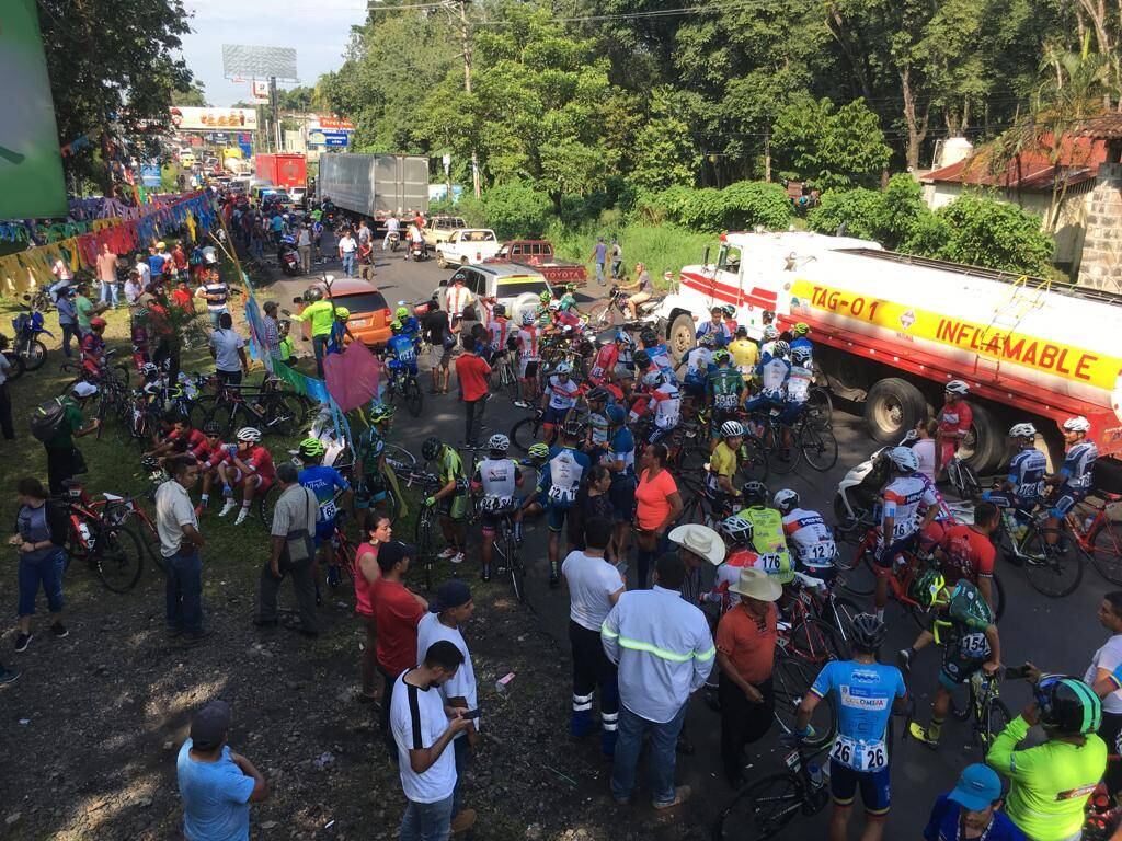Tras iniciar con una salida neutralizada, los ciclistas llegaron a Mazatenango donde estaba el bloqueo, por lo que fue necesario que detuvieran su paso.