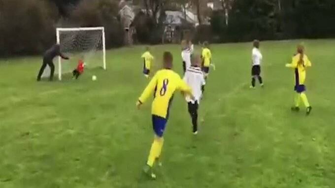 El pequeño parecía distraído y el rival estaba cerca del arco, así que el jugador disparó al arco ante la inocencia del niño.