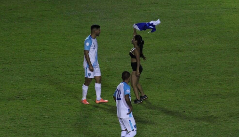 La youtuber burló a la seguridad del estadio cuando corría el minuto 70 del juego entre Guatemala y Puerto Rico.