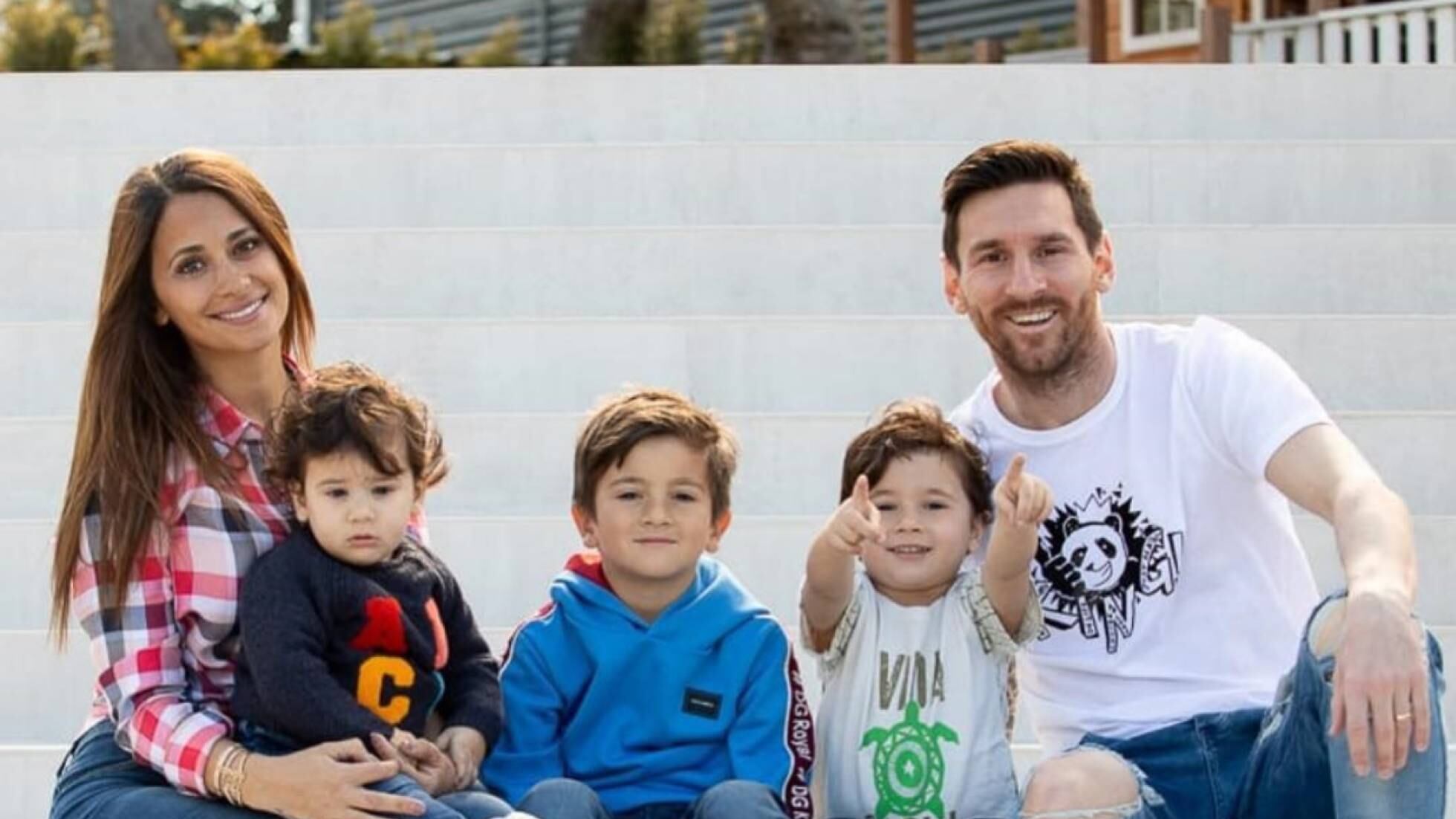 Lionel y Antonela aparecen junto a sus pequeños tres hijos, Thiago, Mateo y Ciro.
