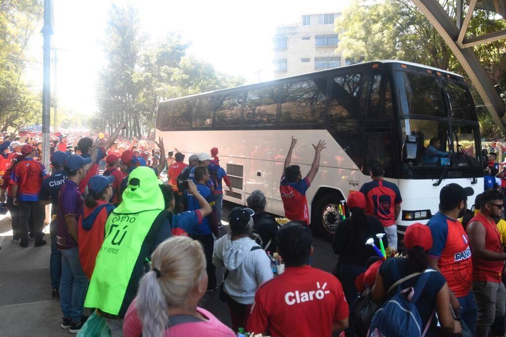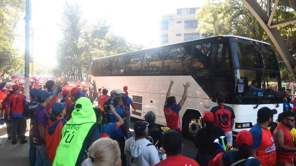 Aficionados rojos, lanzaron objetos al bus y sufrió algunos daños en los vidrios y parte del búmper.