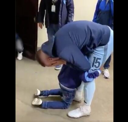 El pequeño al enterarse de esto, fue a buscarlo a los vestidores para convencerlo de que no se fuera, las imágenes dicen más que mil palabras.