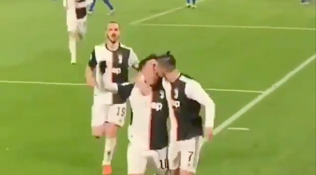 A través de redes sociales se hizo viral un video de Cristiano Ronaldo dándole un beso a Paulo Dybala.