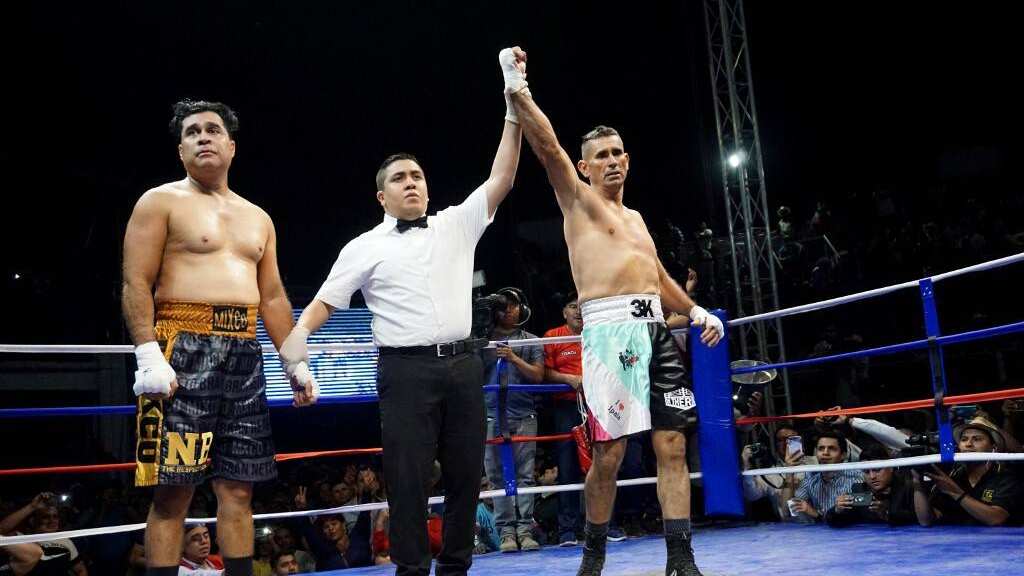 No transcurrían ni 20 segundos y Neto Bran ya había caído a la lona tras una secuencias de golpes bien acertados por el alcalde "Tres Kiebres".