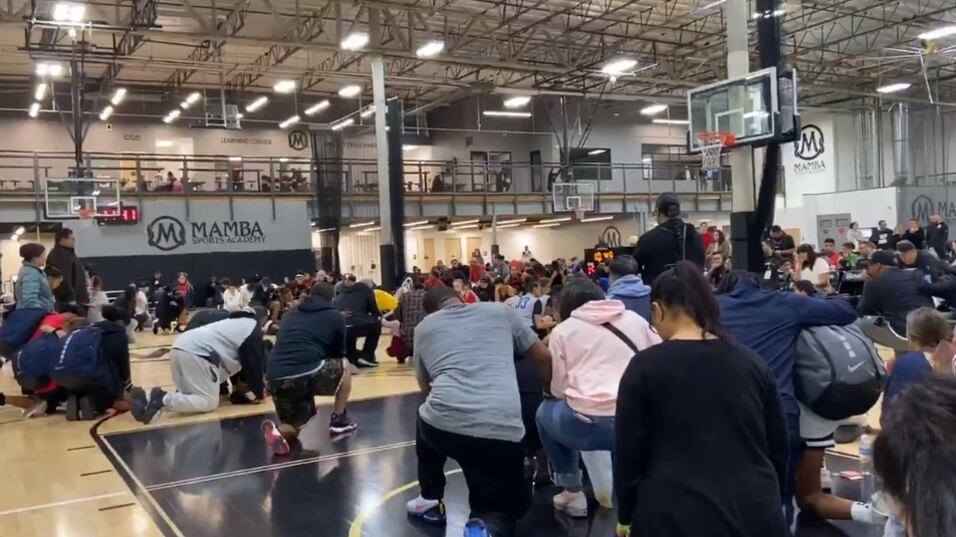 Aparentemente la esposa del exjugador de Los Angeles Lakers, Vanessa, se encontraba en la academia y al escuchar la terrible noticia rompió en llanto, tal y como se puede observar en el video.