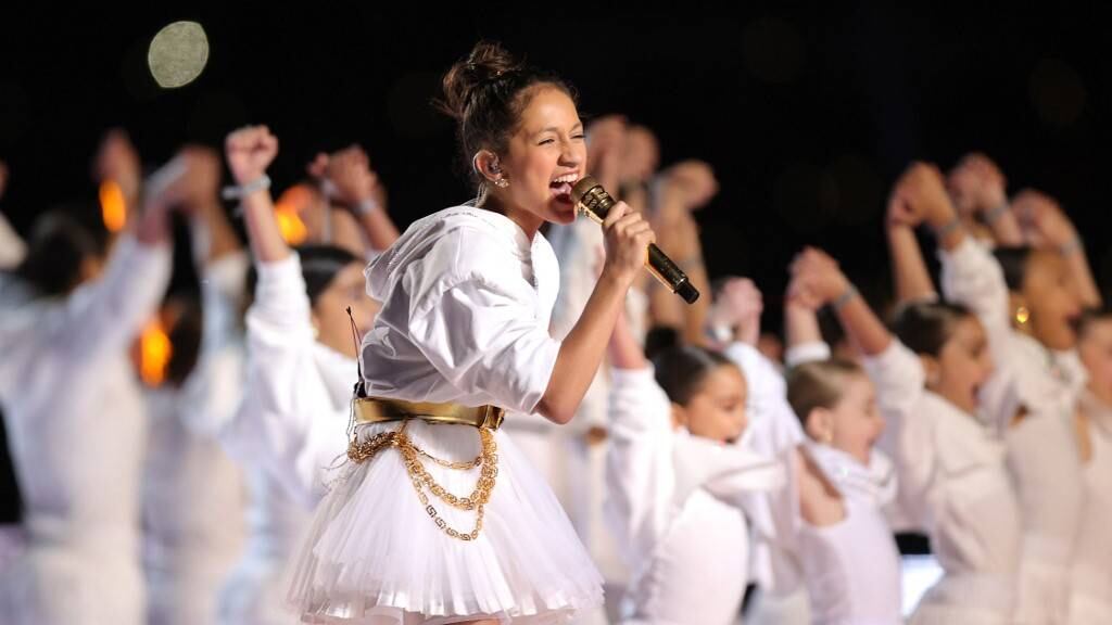 La hija de Marc Anthony y Jennifer López tuvo una actuación magistral cuando cantó al lado de su mamá con Shakira en la batería, durante el Super Bowl.