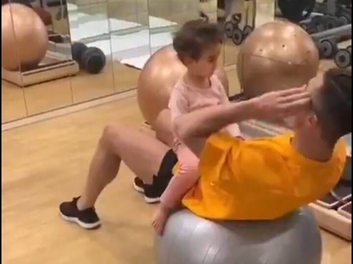 Una serie de abdominales sobre una pelota de gimnasio y la compañía de Alana Martina fueron parte de la rutina del astro portugués.