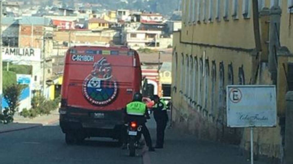 Sucede que, la unidad que transporta a los jugadores de Municipal se estacionó en una zona prohibida frente a la puerta principal del escenario deportivo en Quetzaltenango.