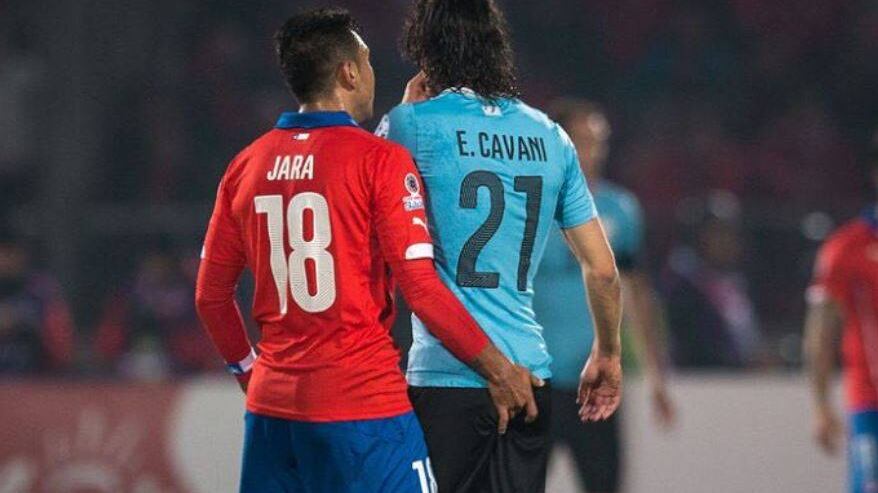 Luego, el momento polémico cuando el chileno Gonzalo Jara le mete el dedo entre las nalgas al futbolista uruguayo Edinson Cavani en un partido de Copa América 2015.