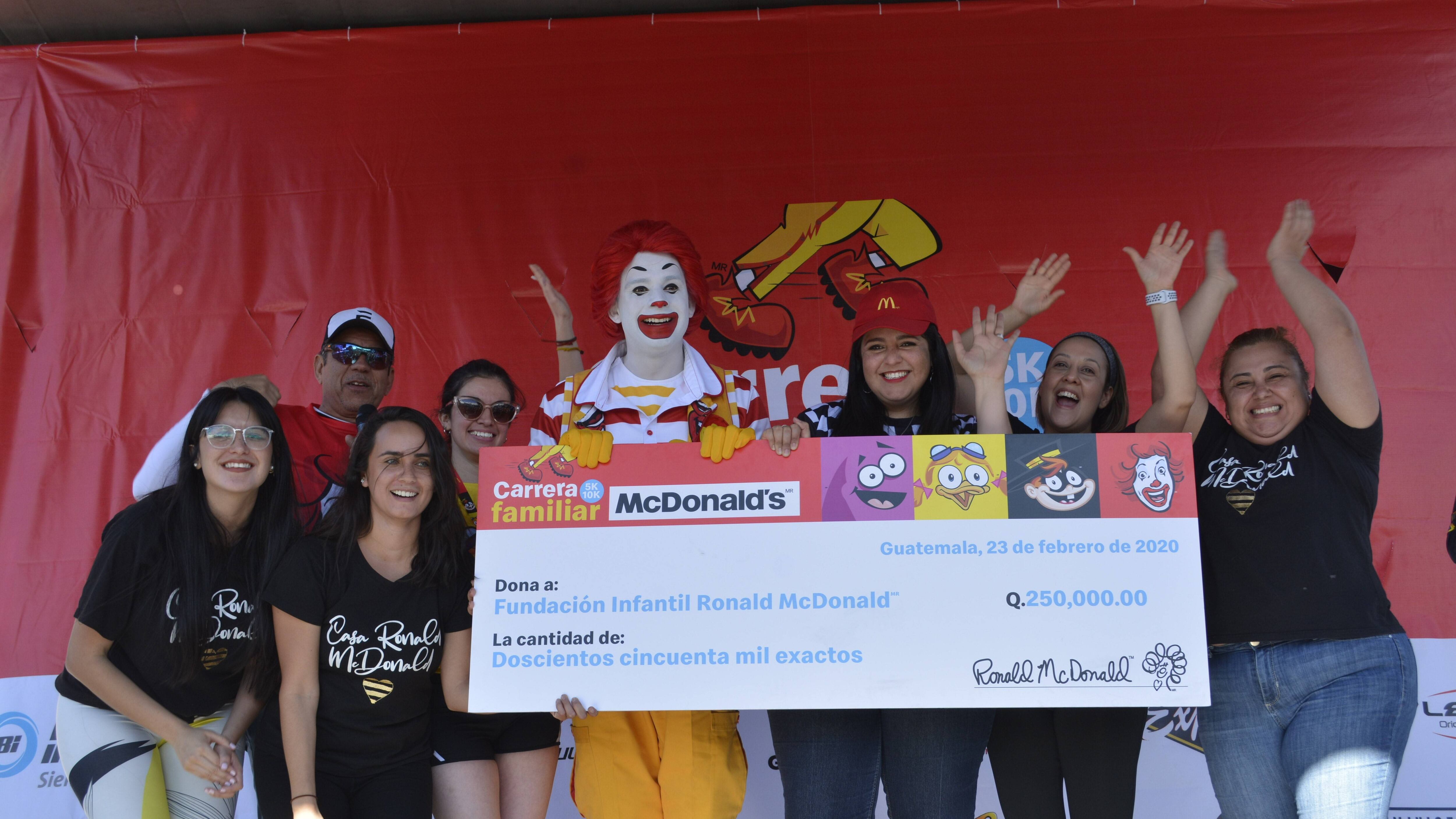 Y al finalizar la carrera se entregó a los representantes de la Fundación Q.250 mil, recursos que serán utilizados en el funcionamiento de las Casas Ronald McDonaldMR.