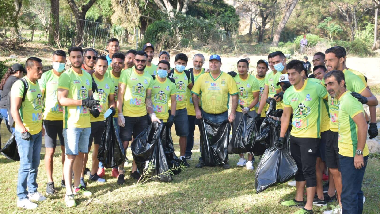 Jugadores, cuerpo técnico y presidente del equipo guastatoyano se unieron al llamado de las autoridades municipales de aquella región para salvar el río Guastatoya.