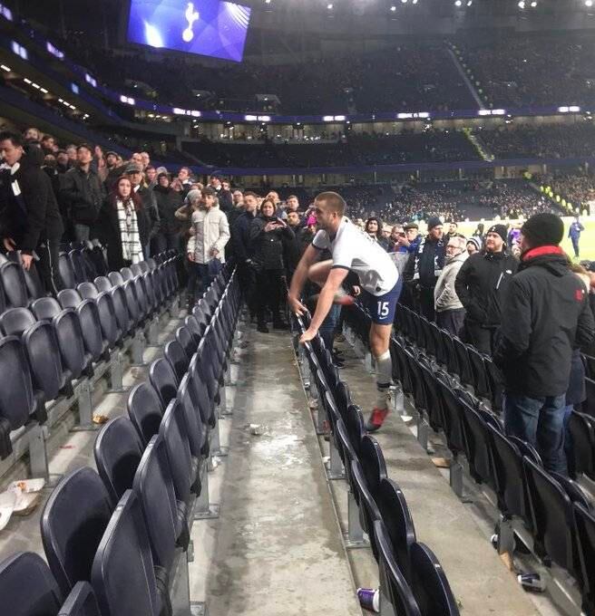 Dier, saltó para encararse con el aficionado, que afirman también se metió con su familia.